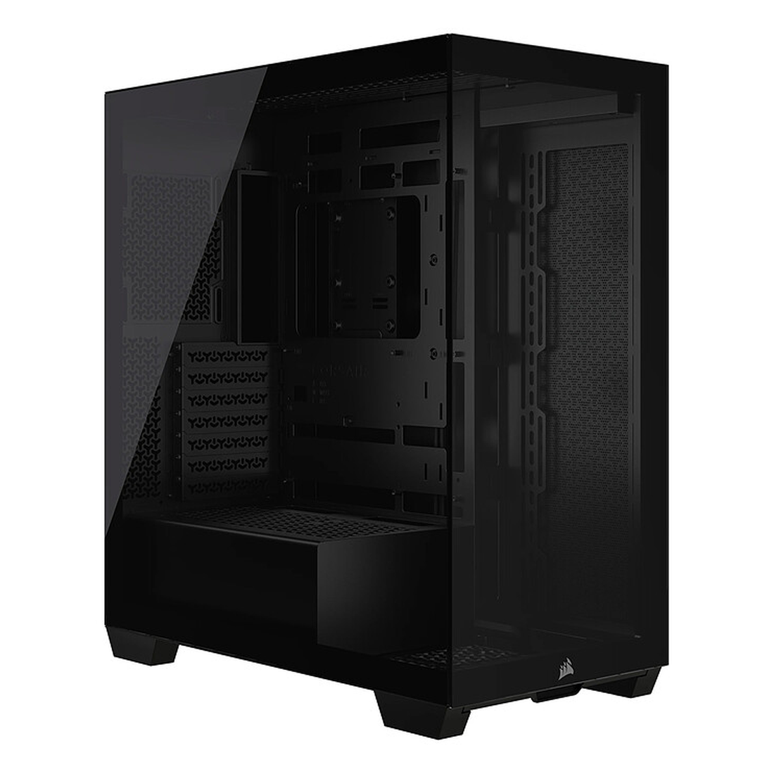 Boîtier PC Corsair Frame 4000D noir conçu pour accueillir une configuration de bureau, offrant protection solide des composants, un espace interne optimisé pour un montage et une gestion des câbles simplifiés, et un design sobre qui s’intègre facilement à tout poste de travail.