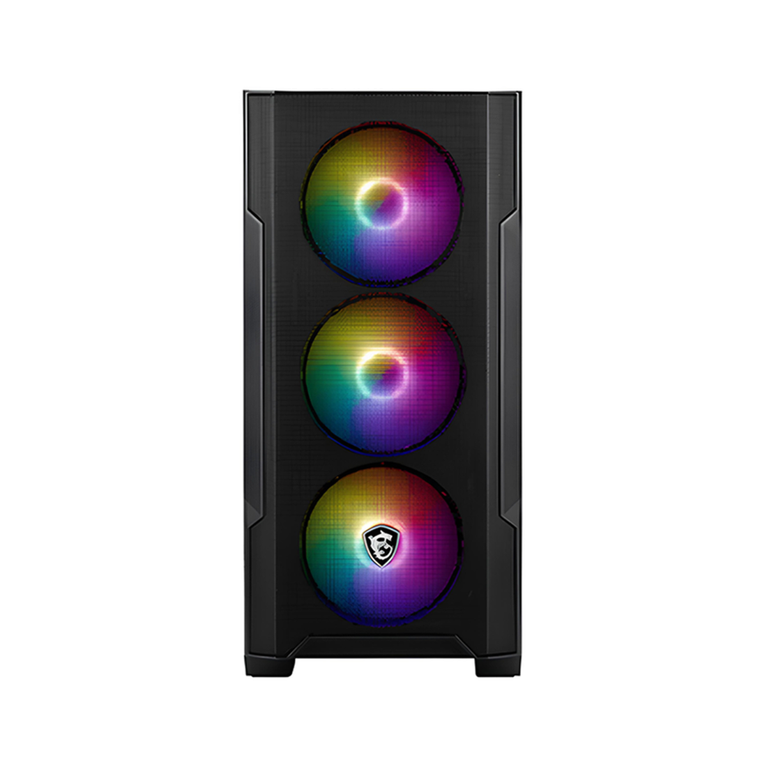 Boîtier PC micro-tour compatible Micro-ATX et Mini-ITX (200x388x423 mm) offrant compacité et alimentation en bas; triple ventilateur avant 120 mm RGB + 1 arrière pour flux optimisé et support radiateur avant 240 mm/arrière 120 mm; vitre trempée, filtres anti-poussière, 2×3,5 et 2×2,5, 2xUSB2.0+1xUSB3.2 Gen1.